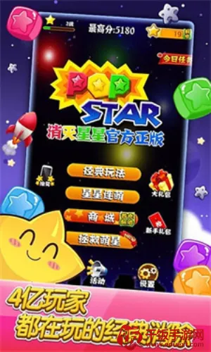 消灭星星经典版是一款超受欢迎的休闲消除游戏,全球超4亿玩家的共同选择。它画面清新,玩法简单易上手,点击相邻同色星星就能消除得分。游戏没有关卡限制,还有丰富的每日登陆奖励、每日任务和等级挑战等趣味内容。其特色功能众多,有多种游戏模式,玩法简单,多玩多得还能拿到精品道具。亮点也十分突出,萌星解谜关卡设计激萌,连消星星玩法新颖,还有星星连萌这种将消灭星星与俄罗斯方块完美结合的创意玩法,拯救萌星玩法增加了游戏难度和趣味性。总之,这是一款能让人轻松益智、一旦开始就停不下来的小游戏,非常值得一玩。