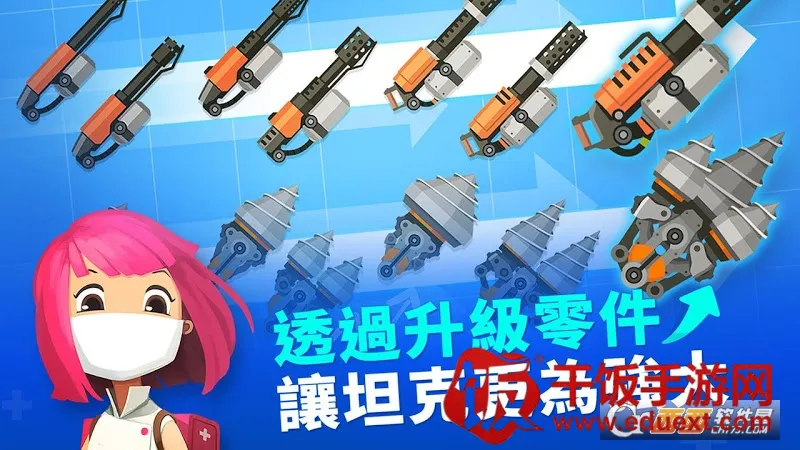 在这个游戏里,玩家可以自由改装战车,提升其战斗力。游戏画面采用多种可爱的设计,给战斗带来萌趣刺激感。还有数十种疯狂刺激的武器配件,让玩家能够自由组装战车。