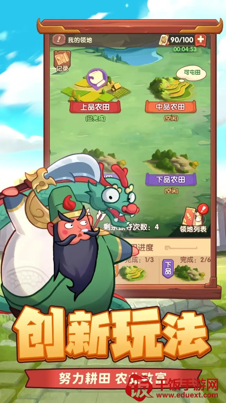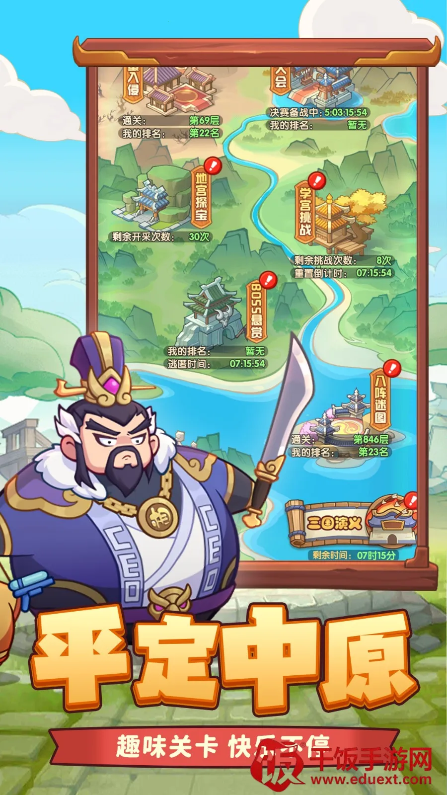 玩法多样,趣味十足:游戏特色玩法丰富多样,日常可掠夺好友屯田、演武场挑战、自由PK、八阵迷图、地宫探宝,挑战十足,更有南蛮入侵、BOSS悬赏等多种玩法等你来体验!