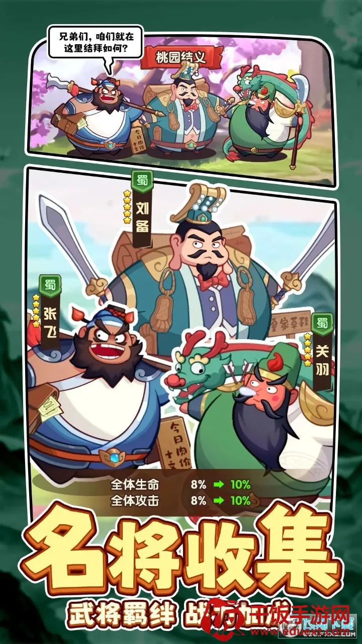 游戏有着全新Q版造型,武将化身可爱胖将,关卡设计趣味,玩法创新,武将搭配精彩,装备养成系统让武将闪耀全场。如果你喜欢三国题材的卡牌游戏,不妨试试守护之境。