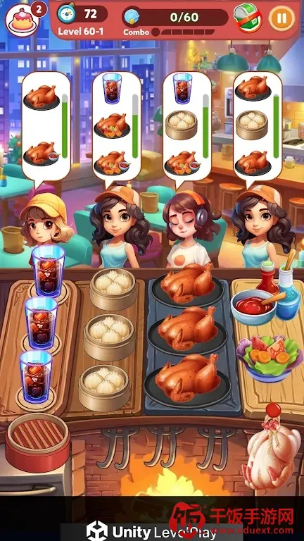 1. 独特关卡体验:游戏拥有多个关卡供玩家选择,每一关都是独一无二的烹饪体验,玩家需在高压晚餐时段完成顾客订单,极具挑战性。