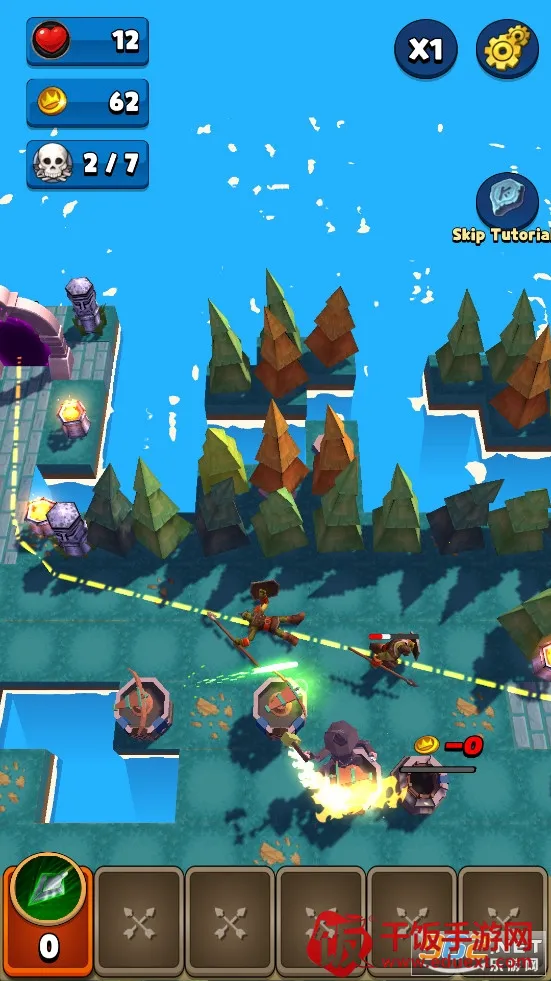 4. 多样玩法乐趣足:能在敌人路线布置防御塔、修建防御墙改变路线,闯关解锁更多防御塔,用符文天赋加强战斗力,还有专属技能可释放,玩法丰富。