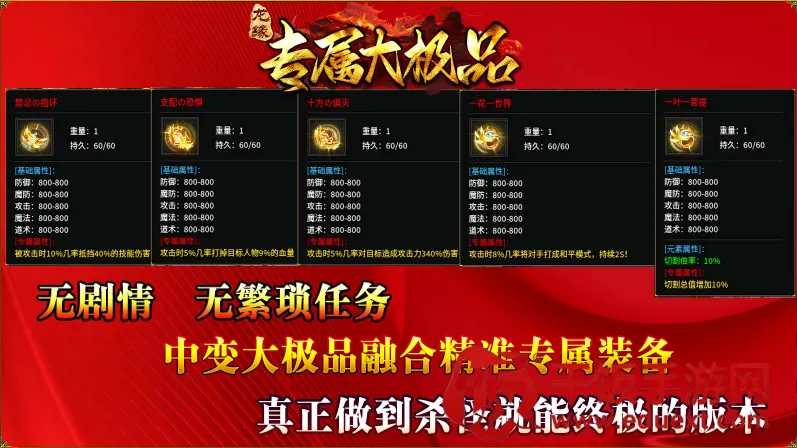 龙缘专属大极品2026官方最新版本核心特色十足。无繁琐引导任务,玩家轻松上手,所有资源本服内可得,无需充值。玩法特色众多,上线极致攻速,激情满满,散人追梦,无合成易出终极,适合各类玩家。专属各异佩戴生效,搭配合理打怪轻松。生存空间充足,打宝乐趣十足,爆率超高。还有上线免费送满福利、自动拾取回收,打怪获赞助冠名,优先升级攻速神环,多种新颖玩法,海量货币赠送,专为零氪玩家打造。