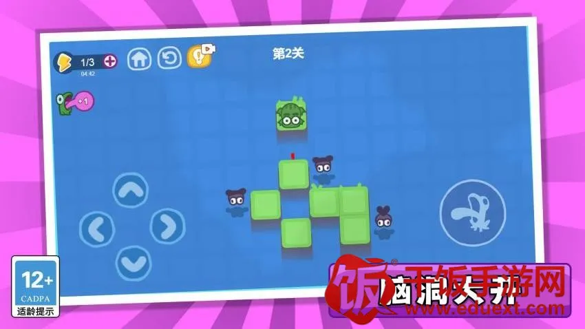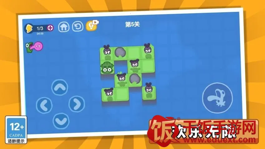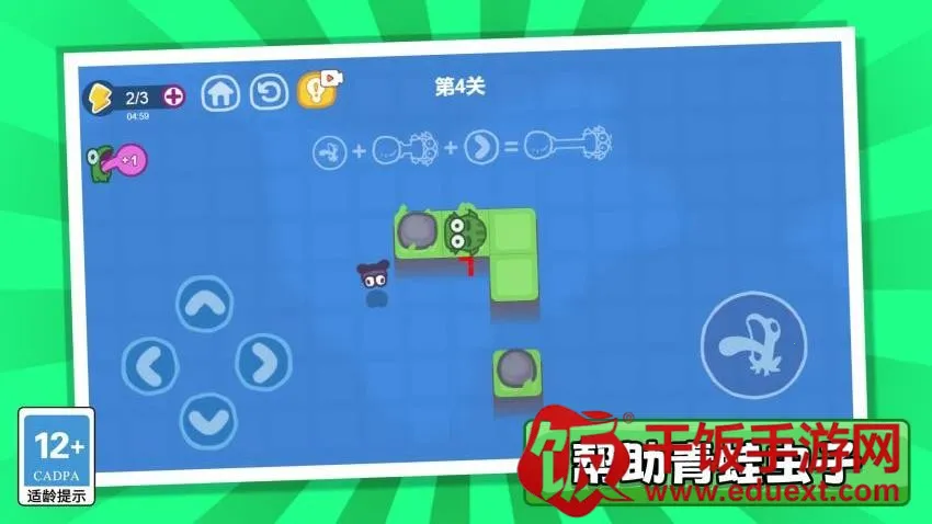 3、欢乐体验:可体验欢乐的跳格子过程,在寻找最佳路线、重复跳跃调整青蛙位置中,享受操控青蛙吃掉虫子的乐趣。