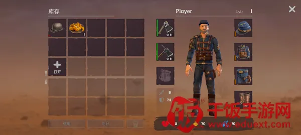 5、点击右下角背包,你可以给角色装备武器、食用食物,以保证角色的健康;