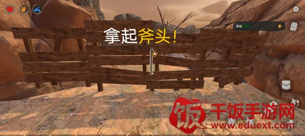 3、进行游戏如图,玩家首先需要拾取挂在木岚上的斧头,然后劈开木栏;