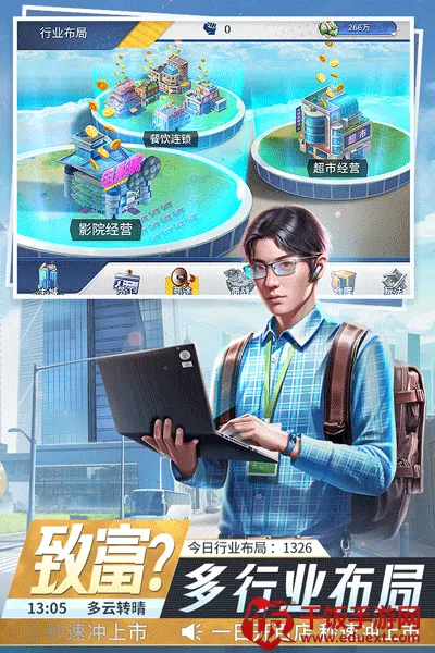 游戏玩法丰富多样,你可以白手起家创立公司,经营店铺、培养员工。在充满勾心斗角的商场上,运用智慧谋略建立庞大商业帝国。还能扮演商业奇才,接受财富联盟投资,联合伙伴争夺商业协会席位。