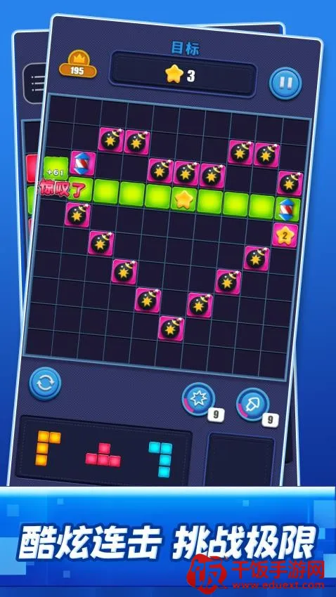 再消一个2026最新版本是经典方块消除手游。通过匹配消除方块,达成指定目标通关升级。关卡推进元素增多,可解锁道具。还有经典趣味玩法、关键特效等特色,能让玩家享受消除乐趣并不断挑战。