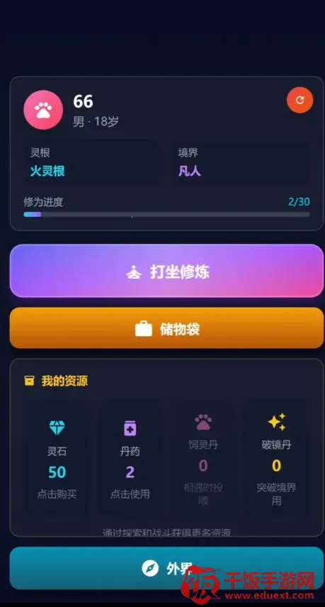 1操作门槛低,轻松上手:游戏主打文字MUD玩法,整体操作简单,玩家能轻松上手并持续推进修炼进程。