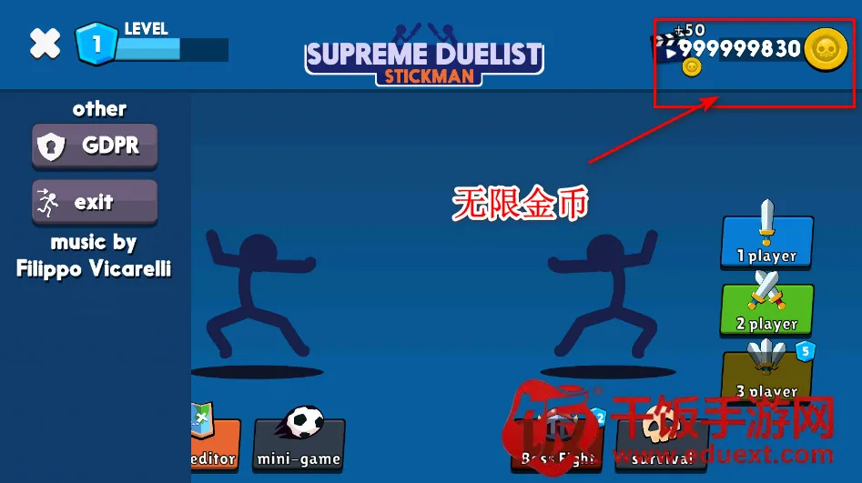 至尊决斗者火柴人安卓版是一款以火柴人为题材的趣味格斗游戏,支持4人同屏战斗,可1V1混战或组队对决,能自由创建地图、挑选武器,还有多种小游戏,玩法丰富,操作简单易上手。