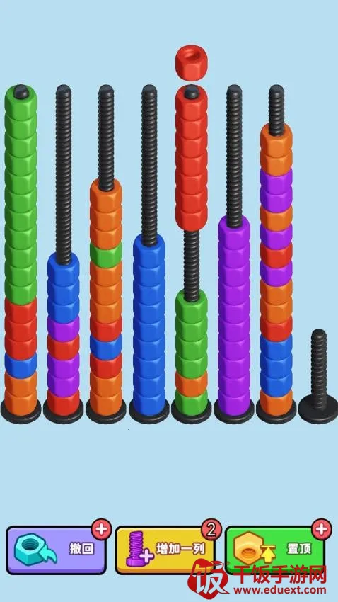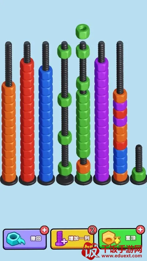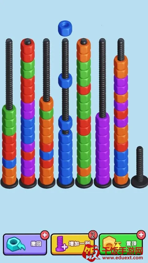 螺丝总动员手机版是休闲解压小游戏。玩家要把相同颜色螺母放同一螺丝钉上完成关卡,关卡中螺母颜色数量不同,移动螺母时相连同色也会动,还有道具助力,玩法简单有趣,快来下载体验。