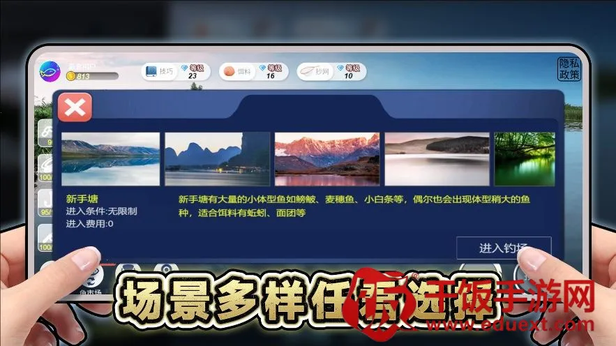 3、拥有超大地图可供选择,还有多种鱼竿可以切换,让玩家在不同场景中享受钓鱼的乐趣,解锁更多惊喜。