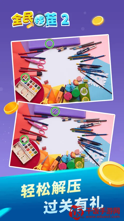全民找茬 2 是一款超有趣的休闲益智小游戏,特别适合想找乐子、训练眼力的朋友。在游戏里,玩家要在两张图片中找出不同之处。操作简单,只需仔细观察,点击发现的不同点就行。由于这也能锻炼眼力和协调性,每个关卡都各有特色,难度逐步提升,可玩性超高。它还有很多优势呢,玩法简单易上手,适合各个年龄段。没有时间限制,可以慢慢找,体验很棒。还能和好友一起玩,增加了乐趣。要是你卡在全民找茬 20 关了,别着急。游戏贴心地设有提示功能,能帮你顺利通关。而且画面精致、画质高清,图片细节清晰,方便你观察。快来下载全民找茬 2,享受找茬的快乐时光,轻松解决关卡难题,度过一段有趣又充实的休闲时光吧!