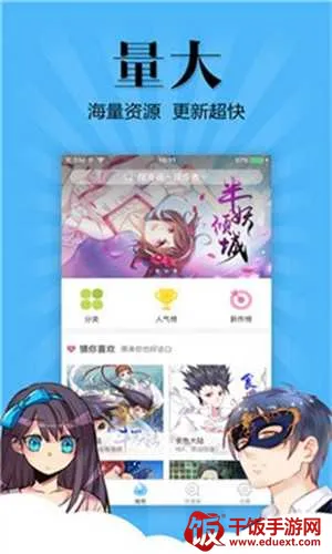 其资源分类针对不同漫画题材,如少女、古风、玄幻、悬疑等。人气榜单按受欢迎程度排行,助你轻松知晓热门漫画。新作推荐让你第一时间发现精彩新漫画。简单的资源搜索玩法,能轻松获取想看的漫画资源。还可对喜欢的漫画进行离线下载,不用担心没网络。总之,扑飞漫画为用户提供了优质的阅读服务,漫画超全、更新快、高清全彩不费眼,操作简单、加载快,是漫画爱好者的不错选择。