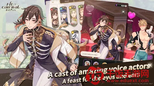 4、沉浸游戏氛围:配合专业声优配音,细腻的声音演绎让情节更生动,让玩家更容易沉浸在游戏世界,在与角色情感升温时还有动人画面和音乐,带来沉浸式恋爱体验。