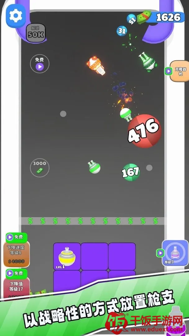2. 关卡丰富乐趣多:设有大量关卡,还有经典模式,提供多种新设玩法,带来不一样的消除体验,每成功消除一个弹球还能获得对应金币奖励,激励玩家持续闯关。
