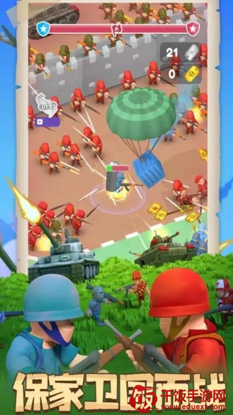 2、画面精美:为经典卡通风格,带有复古质感,画质清晰细腻。场景采用氛围热烈的3D设计,搭配完美背景音乐,营造沉浸式作战对抗体验。