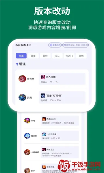 铲铲助手2026官方最新版本核心特色:它是专为金铲铲之战玩家打造的辅助软件。能提供丰富功能,涵盖英雄、羁绊、排行榜等,助玩家顺利上分。可快速查询版本改动,洞悉详情。设有开黑交流社区,能快速发起组队,分享心得。还有精准教学攻略,针对不同元素特点制作,涵盖基础到进阶内容,助玩家精准掌握游戏精髓,提升水平,在游戏中轻松应对各种情况,与众多玩家共同进步。