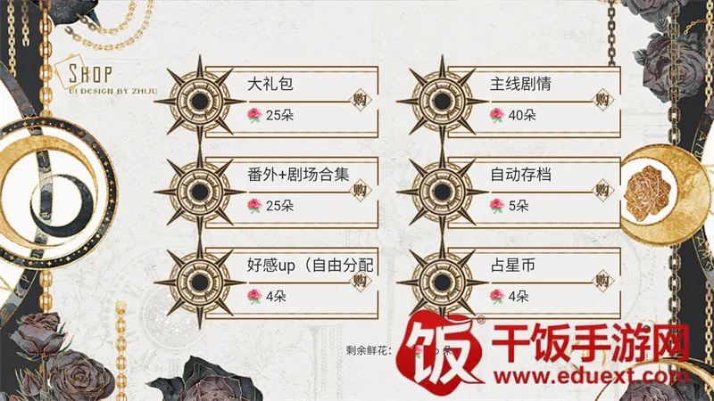 3、由于本游戏已经成功破解无限鲜花,我们可以打开鲜花商城直接购买大礼包、番外+剧场合集、主线剧情等物品。