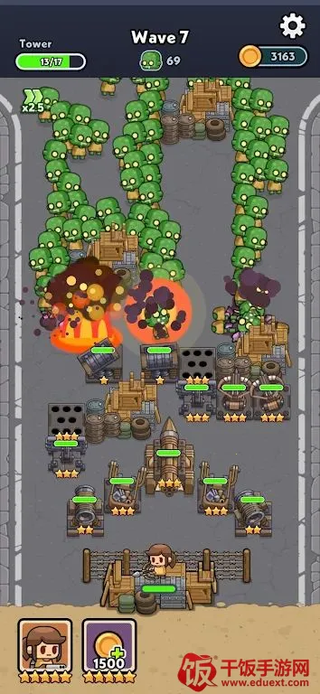 《僵尸堡垒》核心特色丰富多样。拥有无尽的波浪,每一轮都会带来全新挑战,僵尸愈发强大,布局持续变化。可尽情建造和升级,购买各类塔楼并提升等级,增强火力。能精心规划战略路径,合理排列塔楼,形成高效防线消灭僵尸浪潮。每波幸存还能获取金币奖励,用于强化防御。在这里,你要智胜成群僵尸,不断改进塔楼设置,挑战自己能在这场激烈对抗中生存多久,快来加入这场紧张刺激的僵尸防御战斗吧!