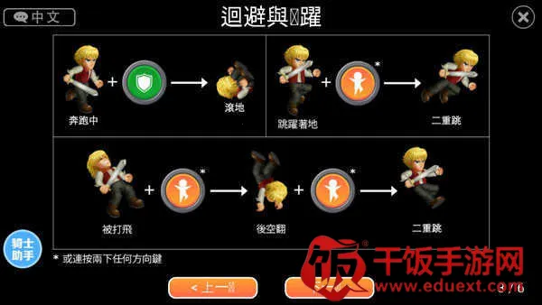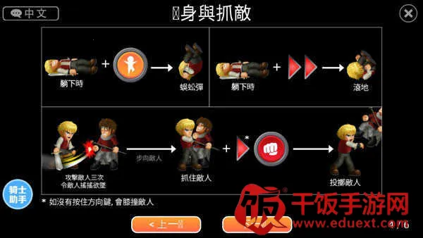 连招:个人觉得eason的连招意义不大,虽然伤害挺高,但稳定性不行,特别是群战或者比武大会这种需要保存自己血量的情况下,就更要求稳。连招弱的最主要的原因是最强升龙斩只能做最终连招不能做起手。起手只能普通攻击起手A三下+四连斩+升龙斩+翔龙斩。这只是一种基本的,其他的连招可以自己试试。不管怎么改都不实用,原因如前所述。但eason并不依靠连招,具体稳定用法会在之后模式攻略中详述。