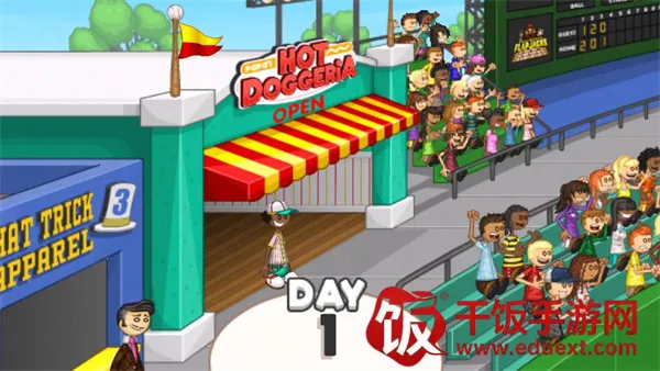 3. 真实的经营体验:玩家要满足顾客需求,出售热狗赚取金币,还可升级店铺规模,体验完整的经营流程。