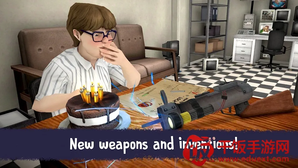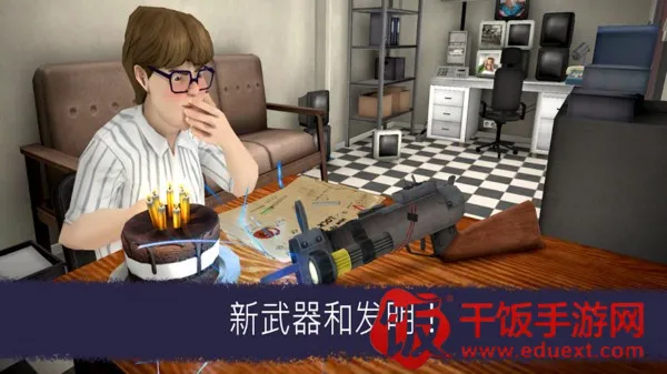 2、场景中有枪支弹药,武器是对抗冰激凌怪人的好用手段,助玩家应对危机。