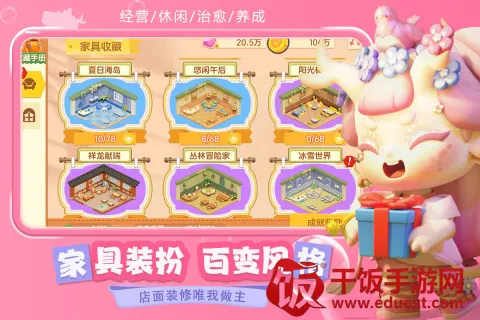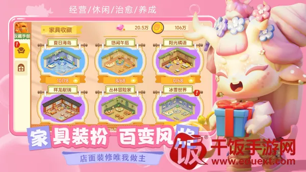 想体验经营梦想乐园的乐趣吗?这款专为女孩设计的模拟经营游戏超棒!在这里,你能经营专属小店,雇佣金牌店员,自由装扮店铺和家具,还能开启神秘潮玩盲盒。根据顾客需求制作美食,查看收益并提现,购买家居装饰和设备升级,学习各种美食配方,发挥想象力和创造力,打造独特的梦想乐园。它有丰富的装扮选项,能打造个性独特的店铺形象吸引顾客;各种潮玩盲盒可解锁神秘道具和角色,增添乐趣与惊喜;雇佣金牌店员能提升服务质量和效率,让经营更顺利。游戏里获取扭蛋机也不难,打开游戏点击上面的任务,在家具卖场界面点击幸运扭蛋,在梦想乐园界面点击勾号就行。快来下载,感受经营创业的快乐,探索不同玩法,发展自己的经营策略,还能和其他玩家互动交流,分享经营心得和装扮技巧!