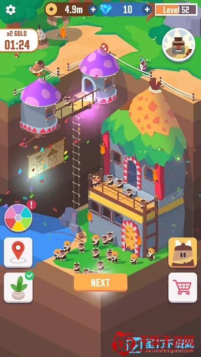 想体验当矿产大亨的感觉吗?这款游戏就能满足你。它有着经典像素风格与传统模拟经营玩法。在游戏里,你要经营自己的金矿,招募员工、升级采矿工具。比如招募更多专业开采人员提高效率,升级各项配置提升工作效率。通过出售矿石换取金币,合理管理公司解锁购买设备增加收益。这里还有各种福利系统,像幸运大转盘、每日签到、成就奖励等。游戏场景丰富,有峡谷、霜冻之地、雨林、樱花、沙漠等,不同场景对应不同建筑和宝藏。工人会偷懒,点击图标可唤醒。简单说就是挂机建造房屋,升级工人数量和属性加快建造速度。快来试试,感受成为矿主的乐趣吧。