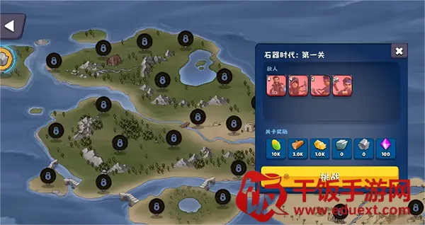 进入石器时代后,通过解锁制图学,从而解锁作战指挥所,进而解锁外出战斗系统。(作战指挥所在初始岛的正左方岛屿)。