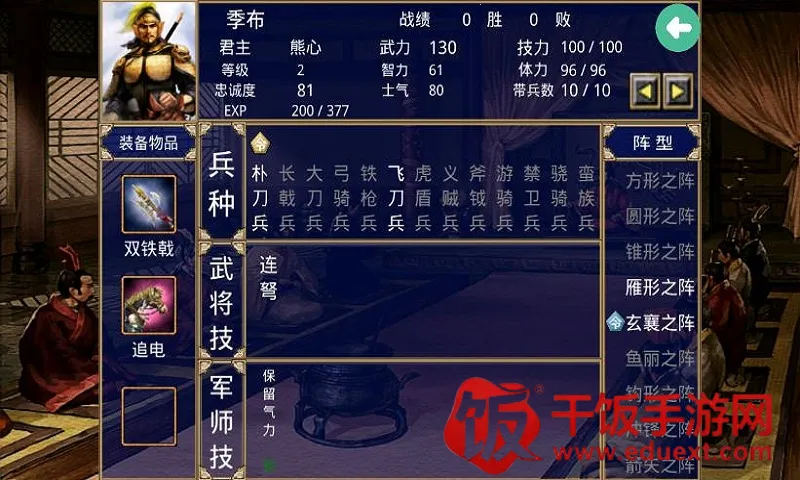 3. 基于经典三国群英传 2 制作修改,在此基础上进行创新,如后宫结婚生子系统、必杀技系统、智将强化、土兵强化、事件系统等,给玩家全新感受。