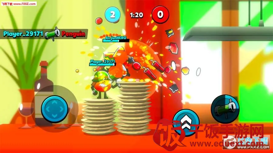 Food Gang安卓版是一款卡通风趣的快速互斗游戏,玩家可从14个厨房食材角色中选择进行乱斗,两两一组匹配对战,在限定时间内积分最高者获胜。游戏画风和玩法虽简约,但乱斗体验趣味性十足。厨房背景战斗场景中,不同食物有不同攻击武器,适当跳跃可躲避打击,瞄准时机出击消灭对手赚取积分获胜。收集每场战斗的卡牌碎片可强化角色能力,提升攻击力和生命值,以解锁更多事物组建食物帮派。玩家能在3个独特竞技场与随机对手战斗,享受快速上瘾的游戏,爬上奖杯路,完成每周挑战释放更多力量。 整体而言,它能给玩家带来别样的游戏乐趣,是一款值得尝试的休闲游戏。