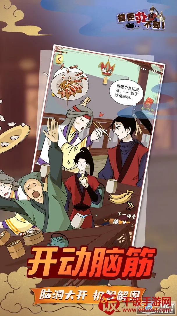 《微臣办不到》是一款超有趣的古风解谜游戏。它能带你体验不一样的宫廷故事,解决你对独特剧情解谜的需求。游戏里有出众的美术画面,无广告干扰,让你尽享视觉盛宴。你将在深宫秘闻中探索,解开各种谜题,发现不可告人的秘密。这里线索众多,人物关系复杂,还有彩蛋关卡等你发现。不同道具的使用对象和顺序能改变关卡结果,你可以不局限于一种玩法,发挥脑洞通关。剧情超级丰富,即使闯关失败也有剧情故事,失败全结局也充满乐趣。而且游戏完美融合剧情与解谜,带来欢乐爆笑体验。你还能在游戏中与皇上互动,感受不一样的君臣感情,解锁不同剧情结局。快来开启这场欢乐的解谜冒险之旅吧!