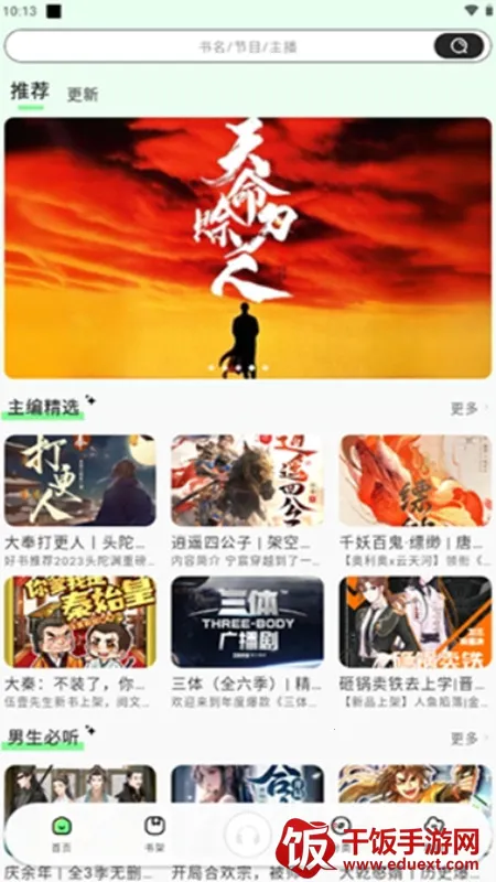 资源丰富多样:首页设有推荐、更新、新书等清晰分类,涵盖有声小说、相声、评书、广播剧和音乐等多种类型。集成海量有声书与有声剧资源,涵盖多种题材,满足不同用户的多样化需求,让用户能按兴趣快速找到喜爱内容。
