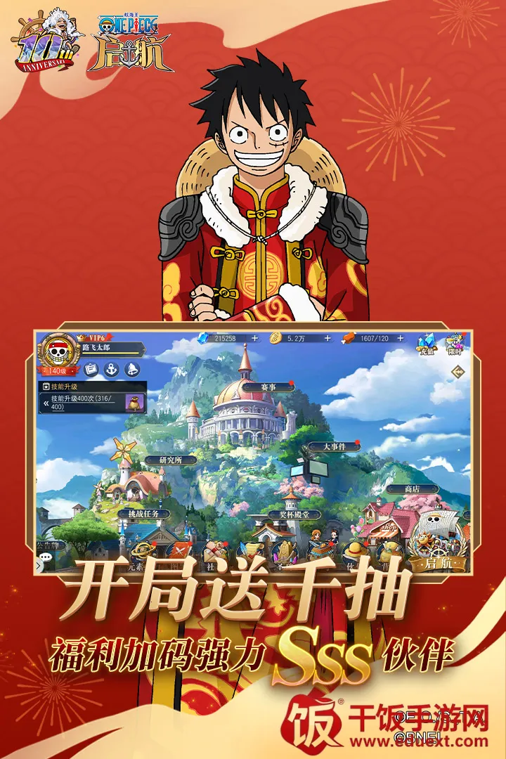 《航海王启航》是一款由ONEPIECE官方授权的手机游戏,它完美还原了动画原作剧情,打造出原汁原味的航海王新世界。精细刻画的游戏场景、全面贴合原作的人物设计、精心打磨的每个细节和动作,都只为还原粉丝心中的航海王世界。如今,全面升级的航海王启航2.0大海战开启了更多玩法,船只养成、海上贸易、海域探索,带来不一样的航海体验。选择喜欢的海盗团船只,培养专属战队,偶遇敌船,触发刺激海战。这款游戏制作精良,忠实还原动画经典剧情,知名角色悉数登场,100%原味再现草帽海盗团成长路上的点点滴滴。游戏人物设计全面贴合原作设定,用心打磨场景动作细节刻画,无损还原粉丝心目中的大海盗时代。如果你是航海王的粉丝,那么这款游戏绝对不容错过!