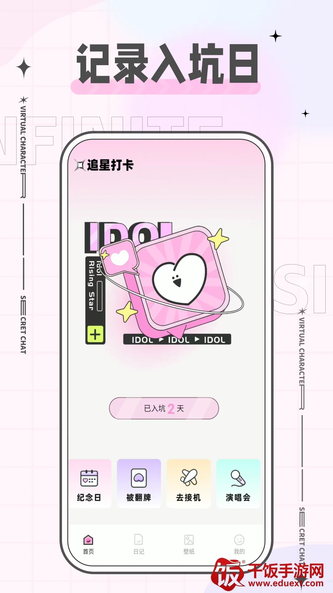 4. 功能丰富多样:还有纪念日功能、打卡系统、写日记、壁纸专区等,满足粉丝多样化需求,提升追星体验。