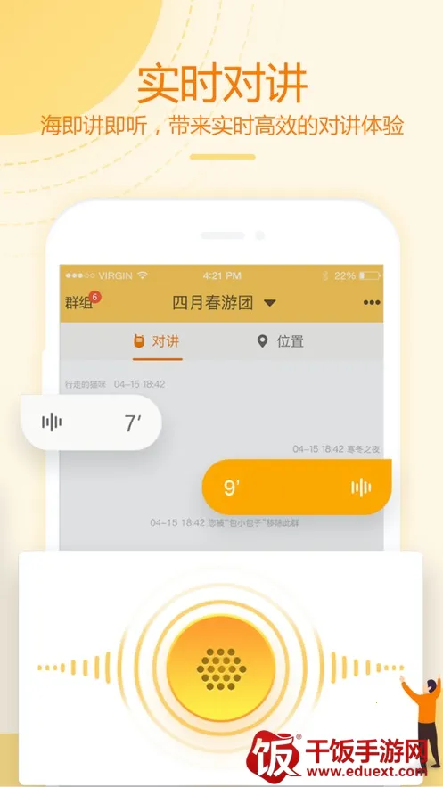 它的功能十分强大。组群便捷,可发起口令建群、同步通讯录建群或分享到微信朋友圈邀请入群。能一键对讲,设置ptt按键和悬浮按键后,玩游戏或看视频时也能随时发起。还能地图显示成员位置,随时掌握组员动态。并且app可与基础版专业对讲终端适配通话,实现专业对讲与手机对讲融合。