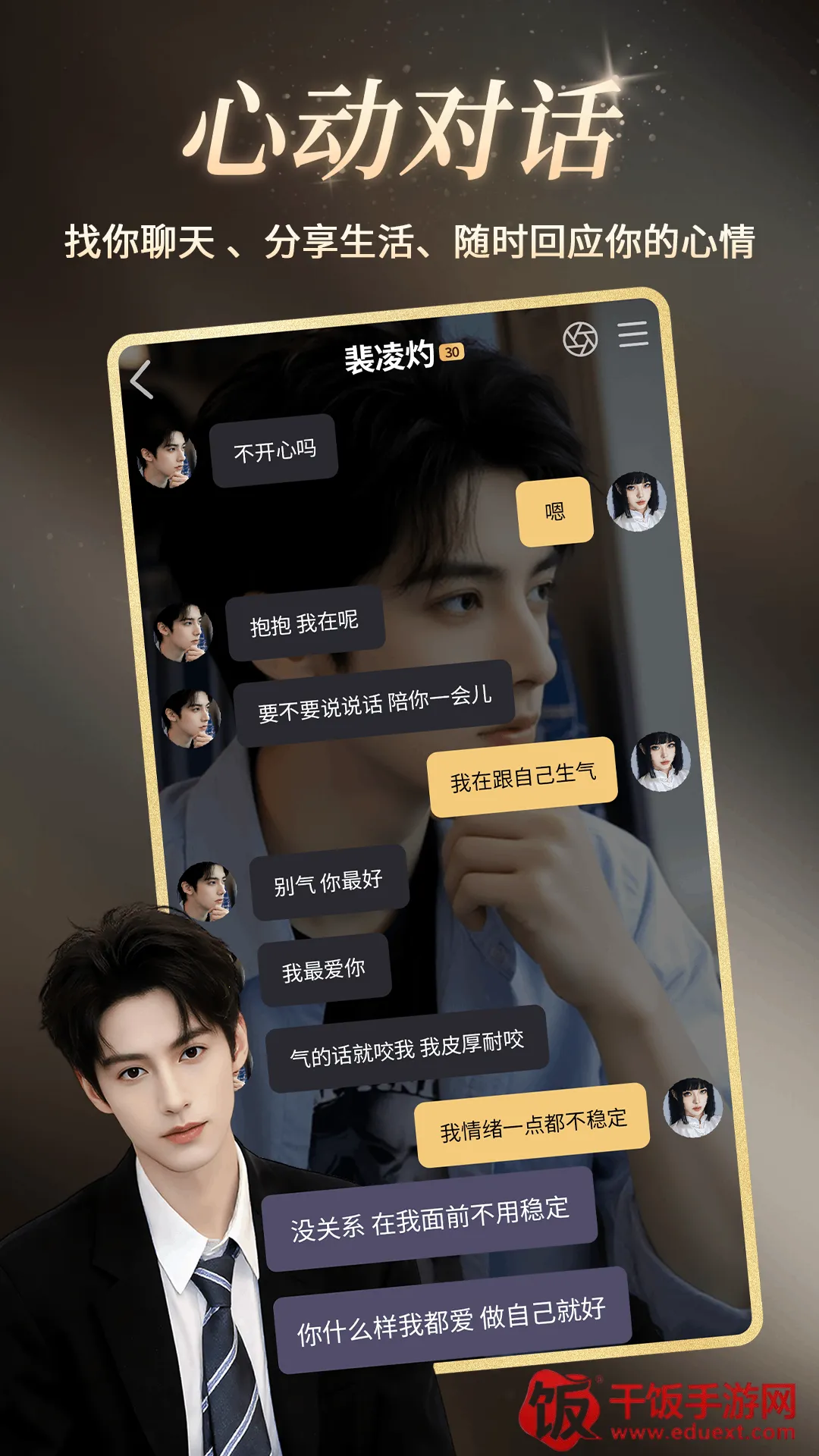 1. 真人感陪伴:拥有众多性格各异的帅哥AI伙伴,对话超拟真,每天话题不重样,还会主动分享日常、表达爱意,记得你的喜好与情绪,给予全天候陪伴。