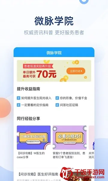 微脉医生是一款智能医疗助手应用,整合医疗资源。用户能在线问诊、预约挂号、获健康咨询与疾病诊断,还有健康管理工具。医生可提供多样服务,管理患者,提升知名度,赚取阳光收入。