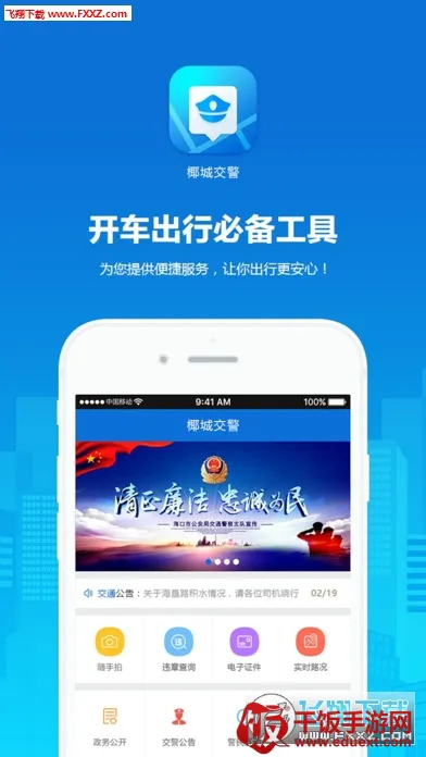 椰城交警是一款本地交通服务平台,依托新技术与指挥系统,有路况推送、违章举报、信息查询等11大板块35项功能,涵盖电瓶车业务、一键挪车等,为椰城朋友提供便捷交通服务。