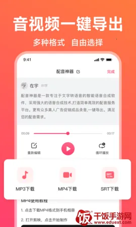 配音神器最新手机版核心特色显著。它拥有三十多位不同风格语音机器人,涵盖普通男女童音等多种类型,还有抖音、快手专属音色。操作简单,输入文字秒变语音,一键导出MP3。提供海量高质量真人成品录音,风格丰富。涵盖广告促销等多行业,有大量模板可选。支持一键导出至U盘,方便循环播放。能轻松分离音频和视频,确保完美结合。可选择超百种智能语音,随意切换发音风格,满足多样配音需求,是一款功能强大且实用的配音软件。