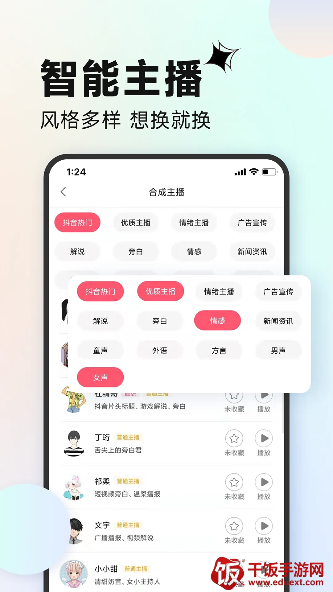 2. 素材超丰富,有数千计样音文案和背景音乐任您选择,可轻松打造独特配音效果。