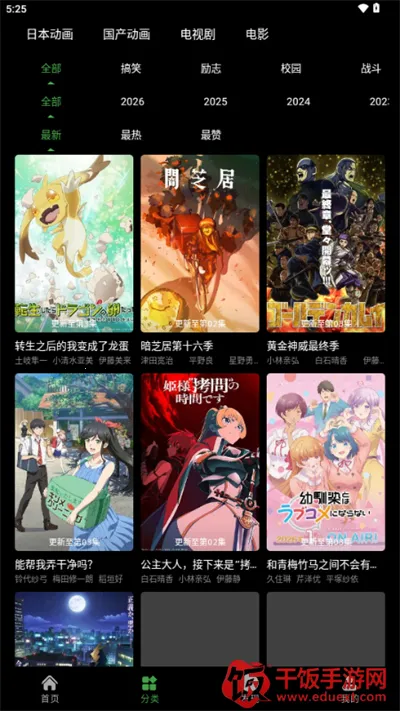 2.点击屏幕下方的分类页面,用户可依据动漫类型、年份等条件进行精准筛选。