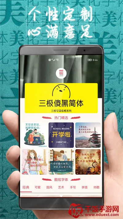 字体美化大师回归版是手机美化工具,汇集上千款精品字体,云字库下载快占用低,全机型适配。有超丰富字体库,分类贴心,支持主流App单独换字,操作简单,能让手机界面瞬间拥有专属个性。