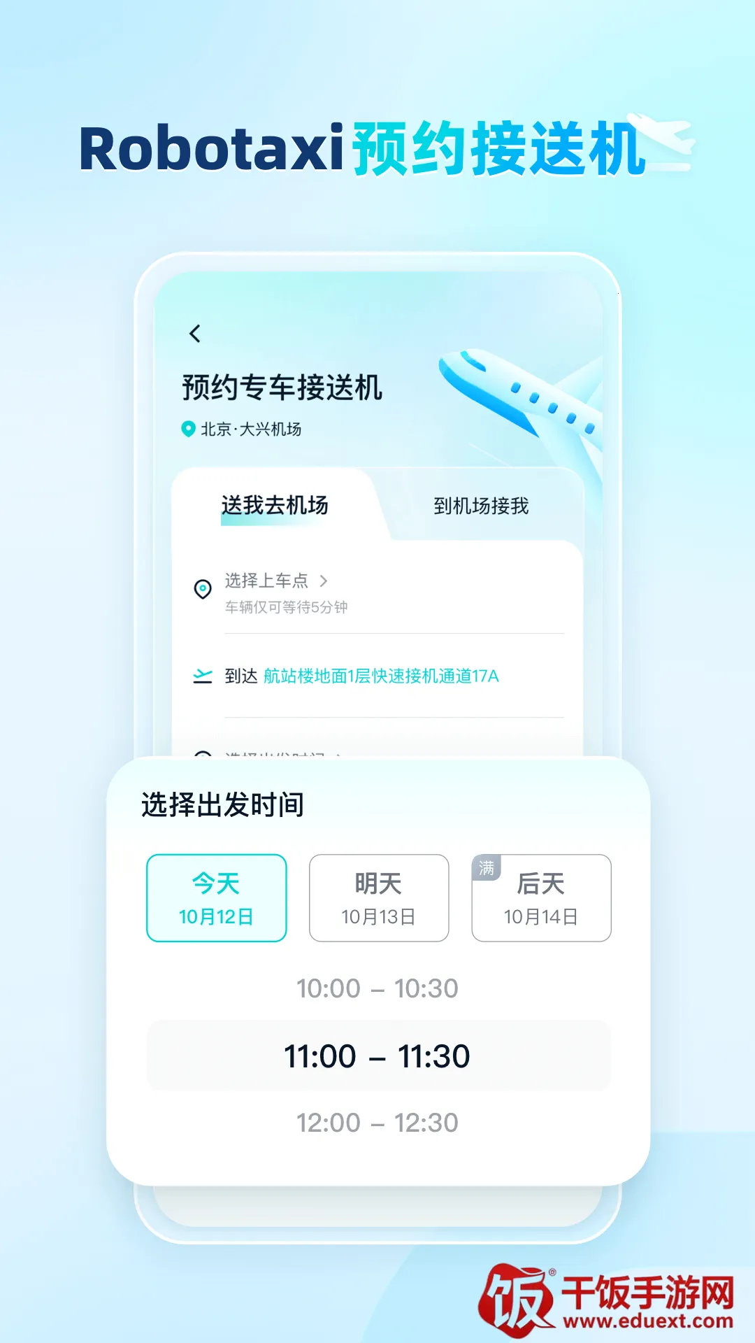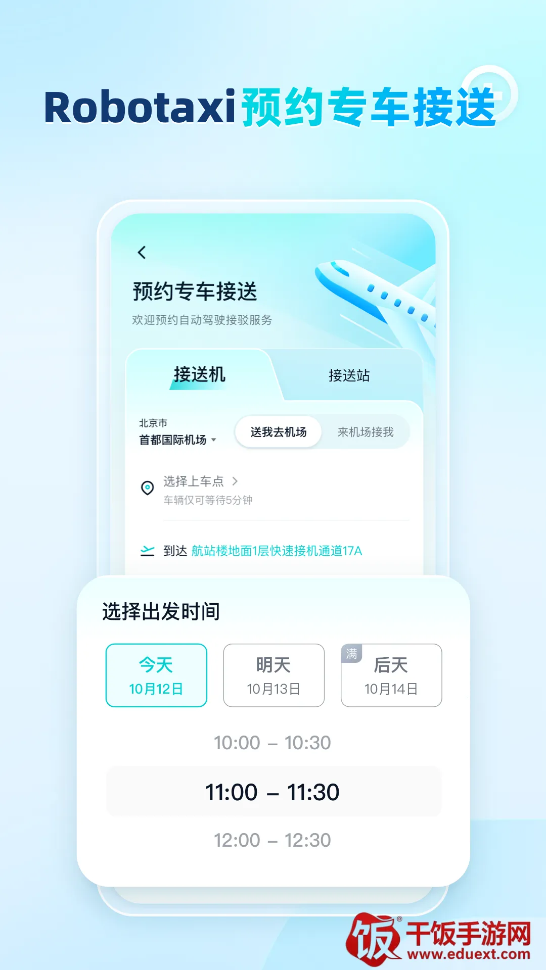 1、操作简便:在app中输入目的地,系统自动匹配路线和车型,等无人出租车回应后就能上车。