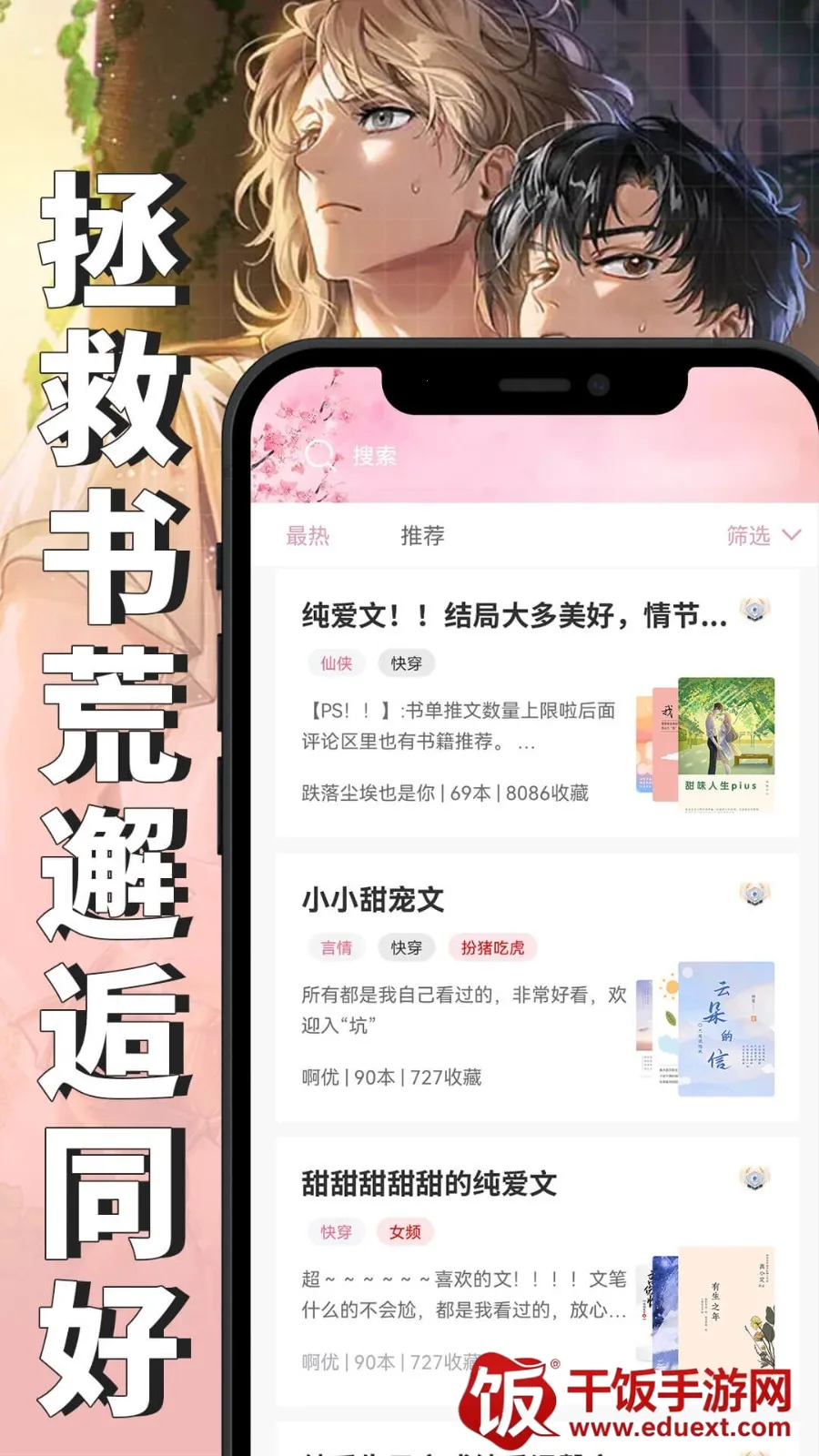 海量资源:微耽小说拥有丰富多样的耽美小说资源,涵盖各种类型和风格,满足不同用户的阅读需求。无论你喜欢现代、古代、玄幻还是其他题材,都能在这里找到心仪的作品。