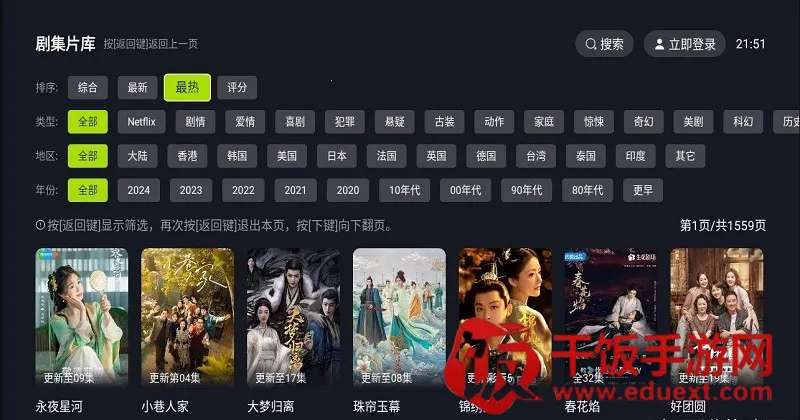 如果你想在电视上畅享海量高清影视资源,那好好看TV版绝对是个不错的选择。它汇集了国内外热门电视剧、综艺节目和院线电影,每日更新,内容超新鲜。智能推荐系统会根据你的观看习惯推送感兴趣的作品,简洁界面长辈也能轻松操作。