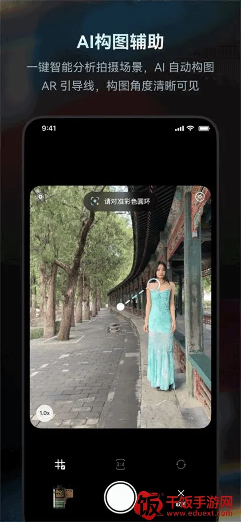 1、AI构图辅助:一键扫描分析拍摄场景,通过AI自动构图与AR引导,轻松拍出具有优秀构图的照片。