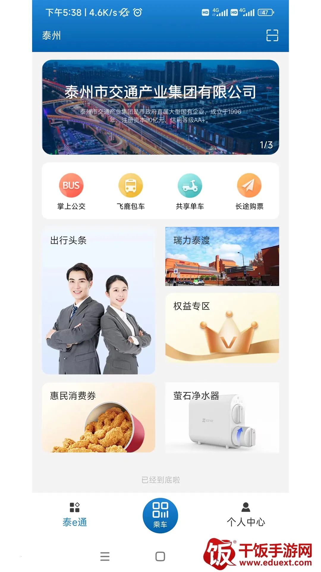 泰 e 通 2026 最新版本是泰州市交通产业集团打造的出行服务客户端。能查公交到站时间、刷码乘车,支持移动缴费支付、在线打车,还可规划路线、精准定位,提供地铁实时资讯等,出行超便捷。
