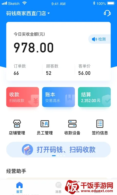码钱商家是一款为商家打造的移动支付解决方案平台。它功能强大,能帮商家轻松接受扫码支付,告别传统现金交易。支持多种收款方式,像扫描消费者微信、支付宝付款码,或者让消费者扫描商家收钱码牌等,1秒就能收款。有到账语音提醒,让商家随时知晓收款情况。还能进行订单管理、店铺统计、会员管理等,比如随时查看订单收入和每天结算到账金额,实行D1结算方式,当日收款次日到账,也可当日收款立即提现到卡实现快速资金周转。而且免开发,不需要技术人员,零成本就能快速实现线下在线收费,操作简单,小白也能轻松上手。对于商家来说,它能满足移动收款需求,高效管理日常经营,是个非常实用正规的平台,能解决收款麻烦、管理不便等问题,带来诸多便利,强烈推荐商家使用。